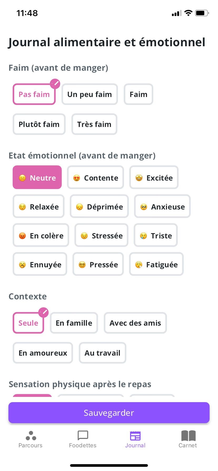 Journal alimentaire et émotionnel